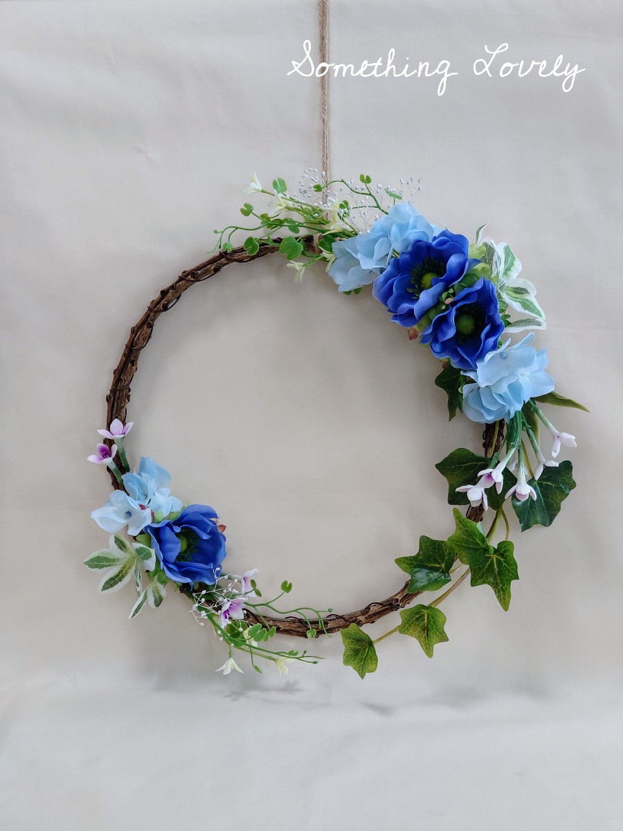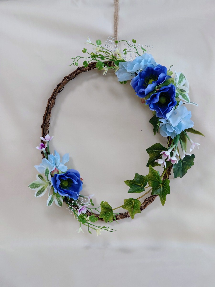 ブルーのアネモネを華奢なイメージのリースでアレンジしてみました。