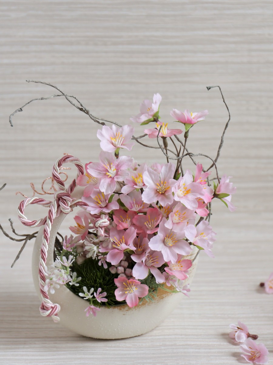 あふれる桜が春の風情をお部屋に運んでくれそうな和の趣を感じるアレンジメントです。