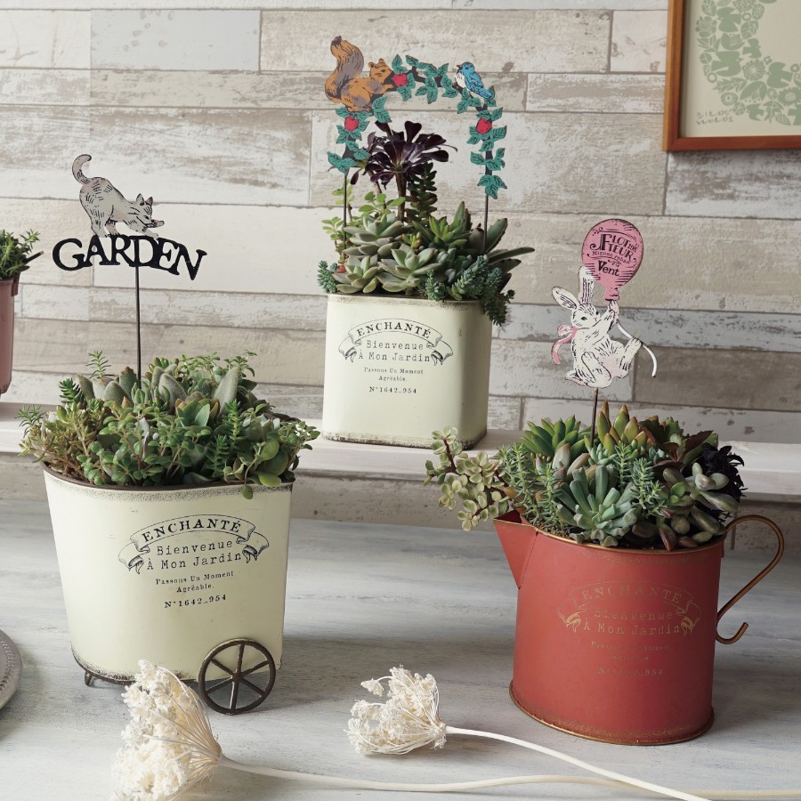 贈り物にピッタリな春らしいカラー展開のブリキ製の鉢。