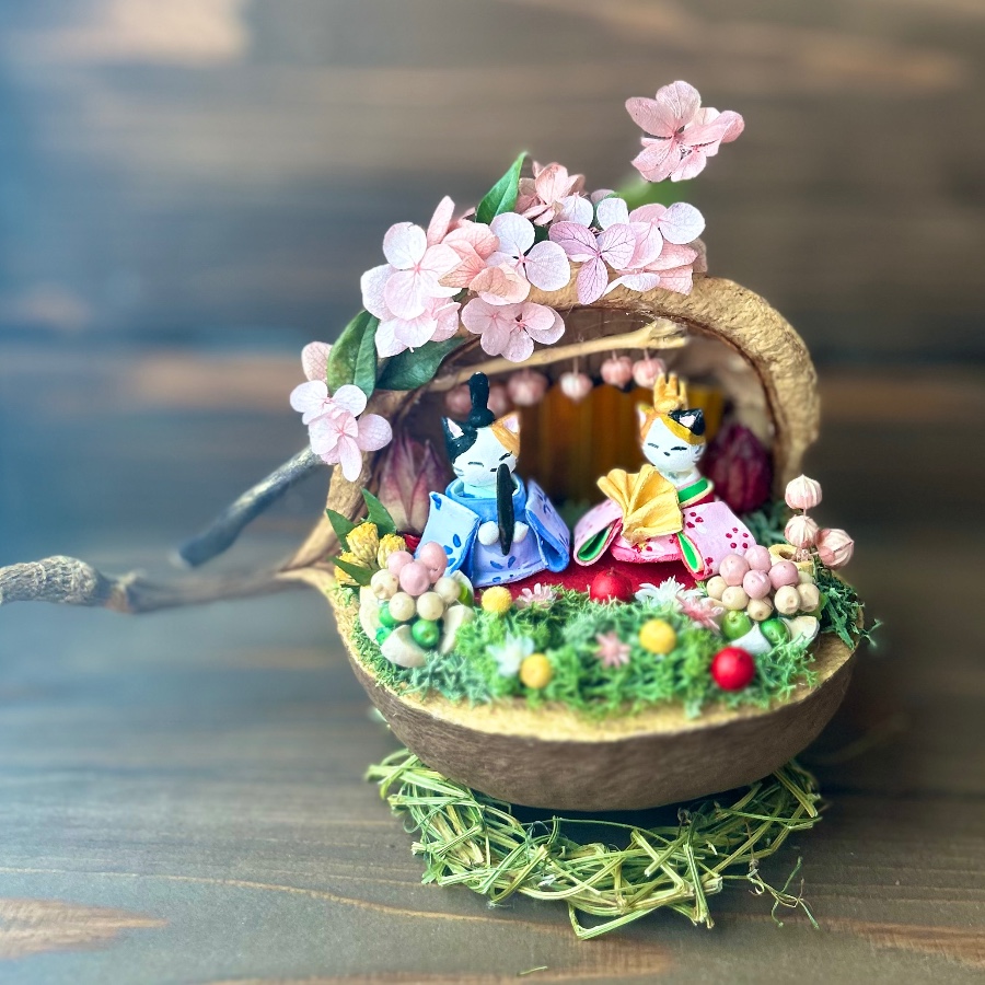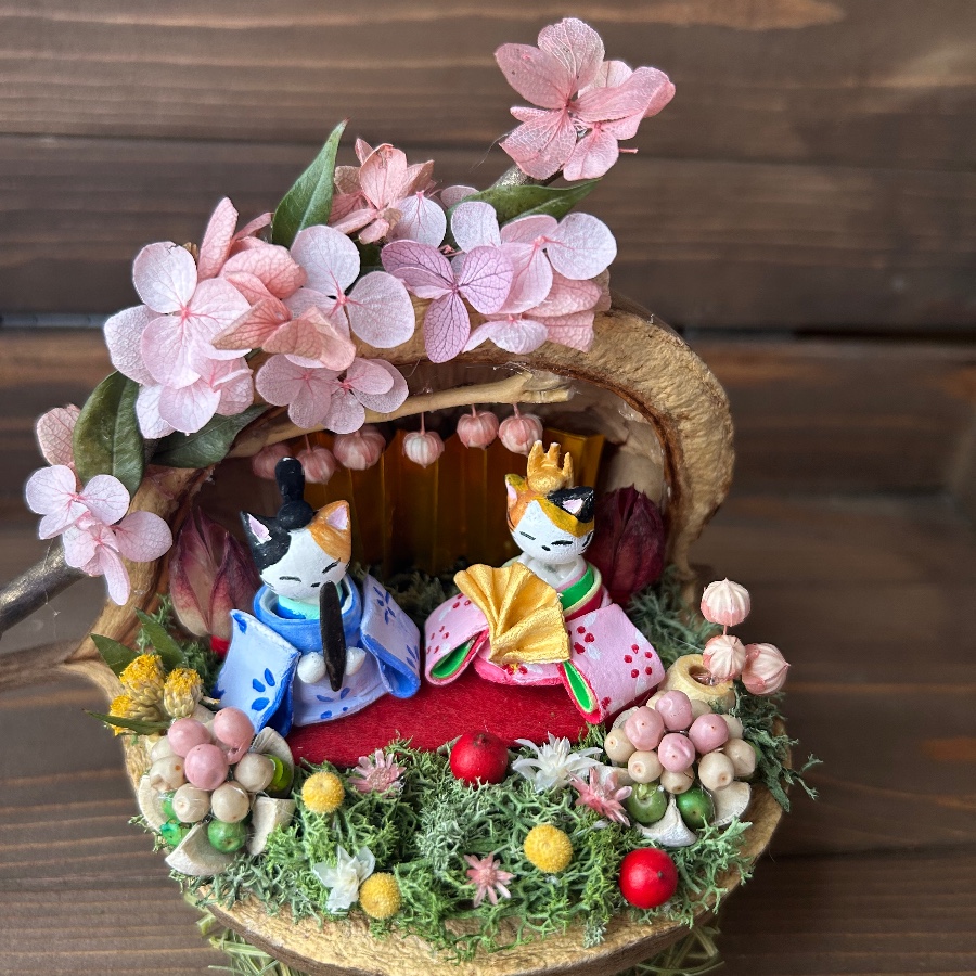 にゃんこのひな飾りをブッダナッツで