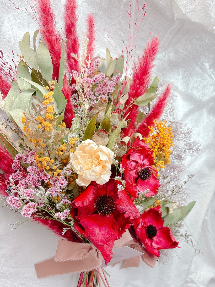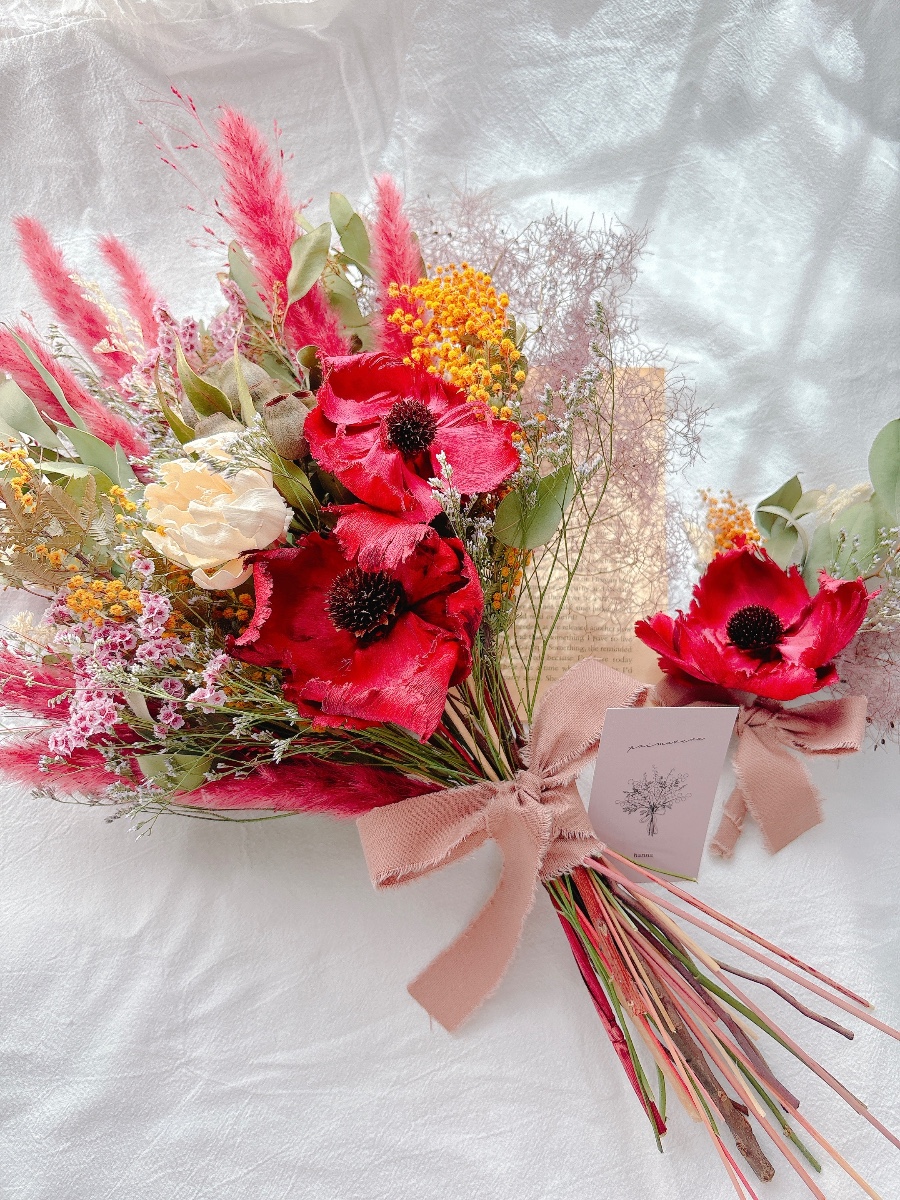 主にドライフラワーを使用し、作品つくりをしております。