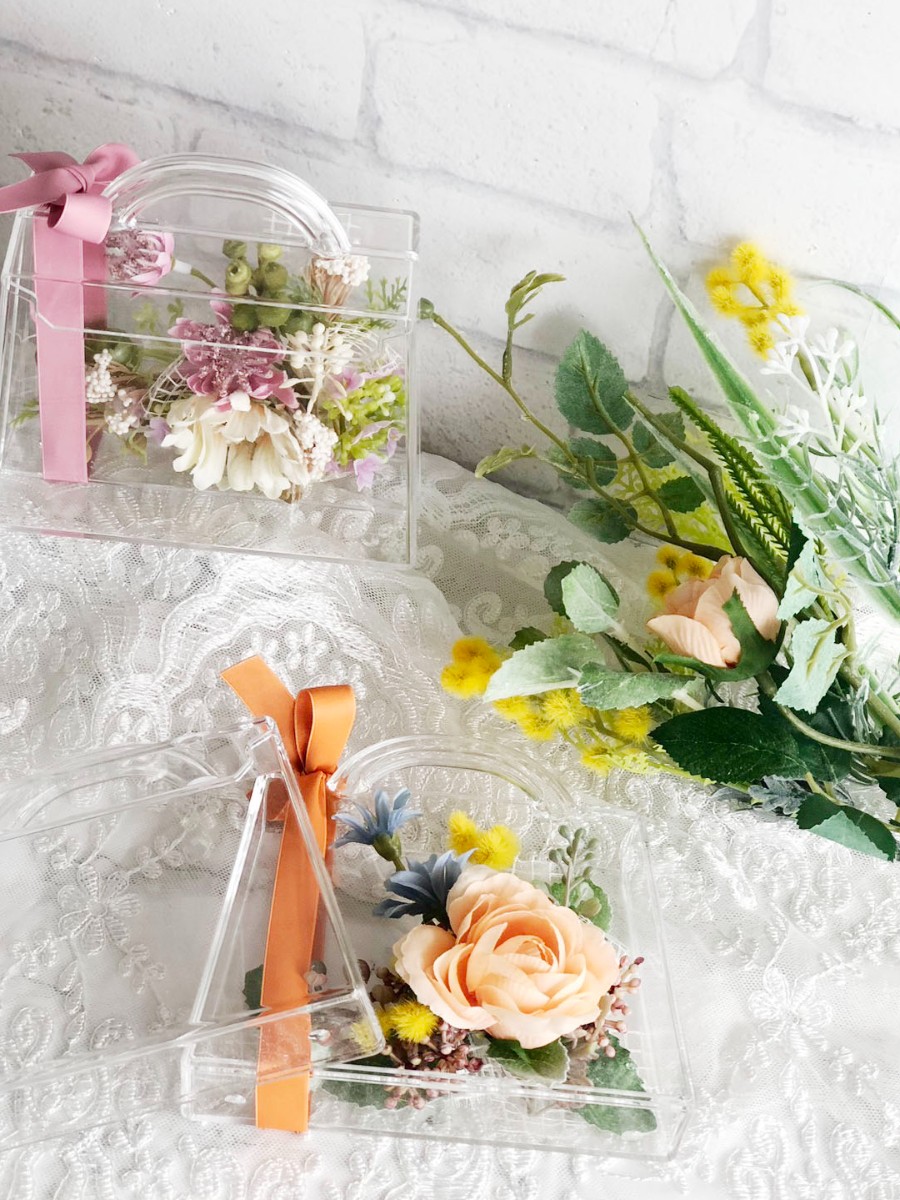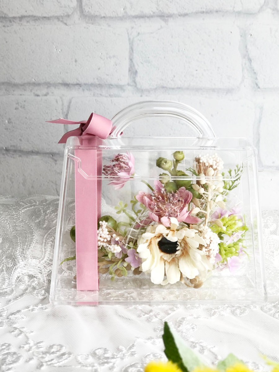 華やかなカラーのお花で、春の訪れが待ち遠しく、バッグを持ってお出かけしたくなるようなイメージでデザインしました。