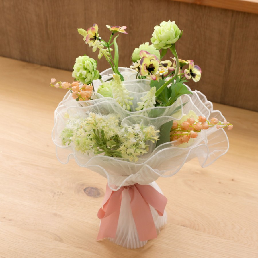 フリルプリーツを使った巻くだけで作れるブーケ。