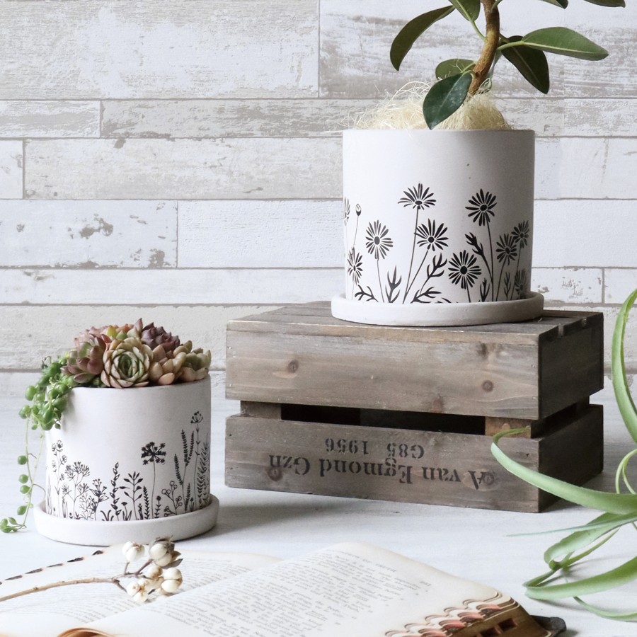 シンプルな花柄のテラコッタ製の鉢。