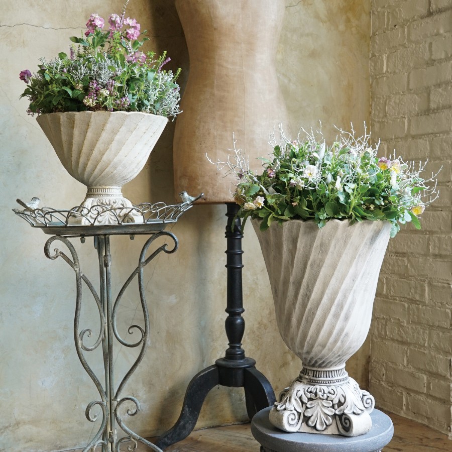 可愛い動物のオブジェをはじめ、アフリカンやエスニック系のかっこいい系、アラベスク柄やダマスク柄といったエレガント系のものまで、どなたでもお取り扱いいただけるように幅広いジャンルのデザインの鉢を数多く企画開発しております。