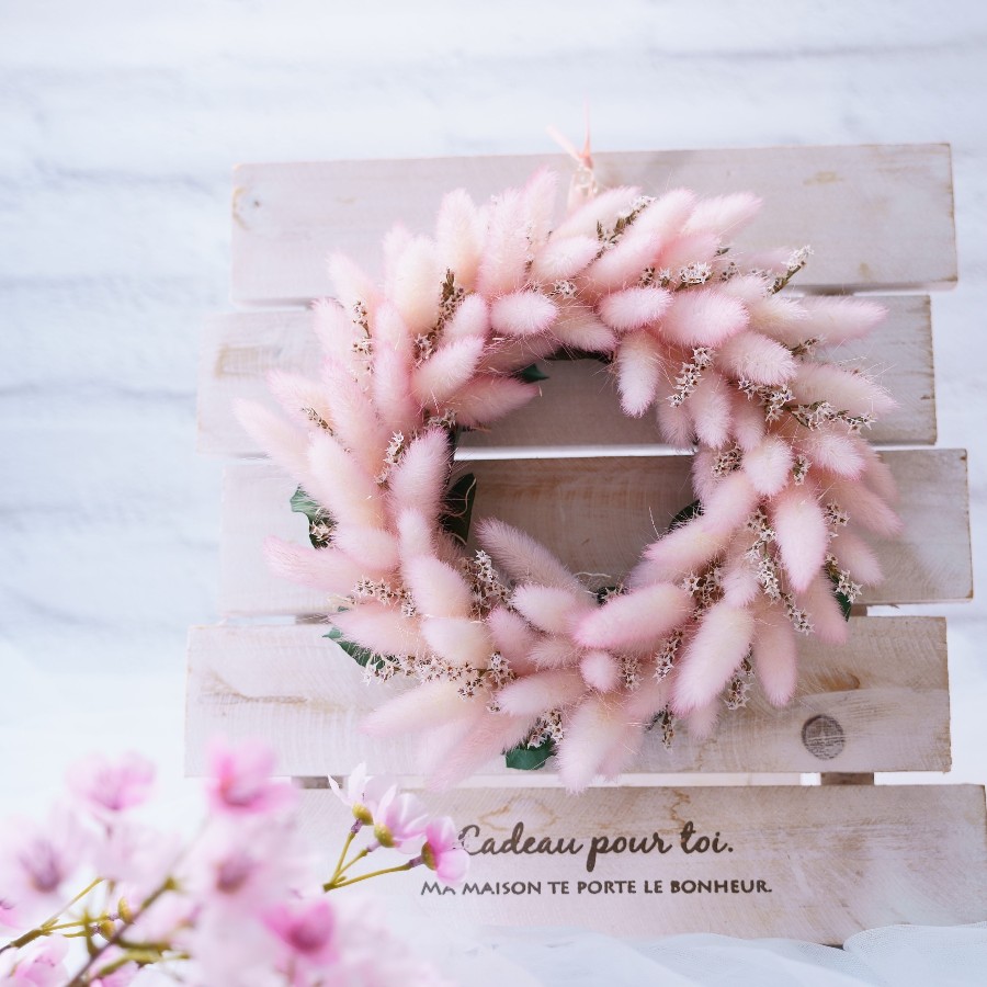 大きさは15センチリースベースにアレンジしており、花材の直径は、22センチ程で、ちょうどよいサイズ感になっております。