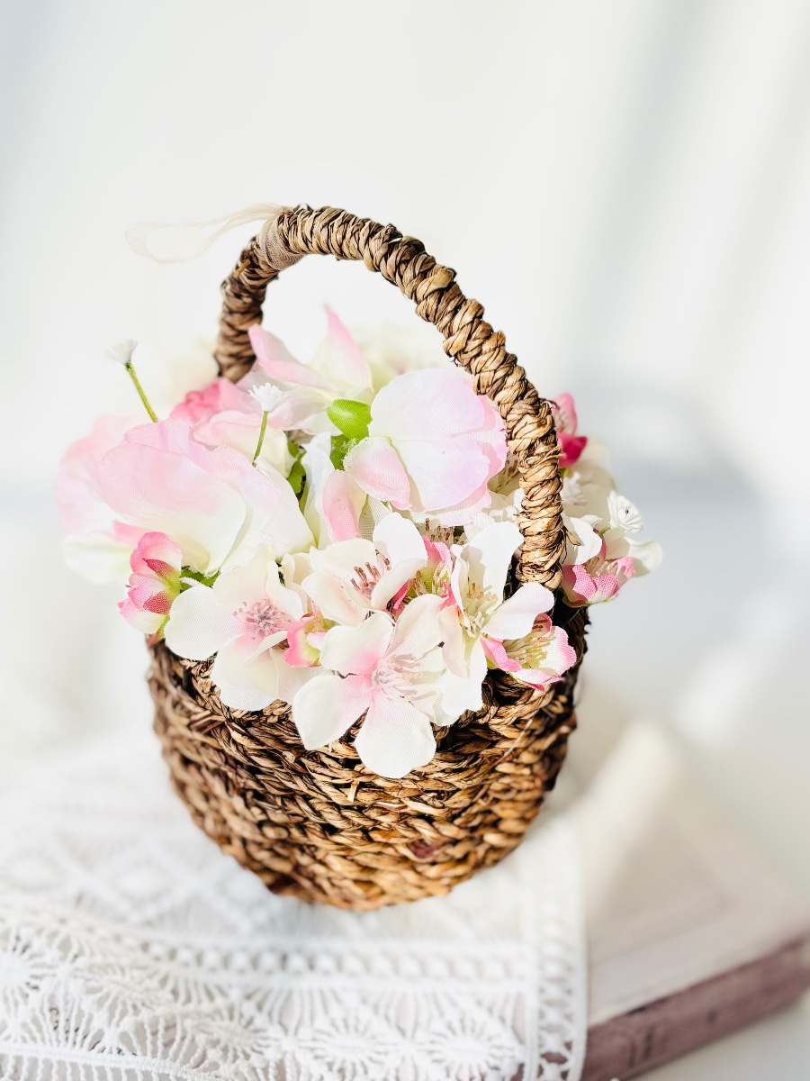 可愛いスイトピーが優しいバスケットアレンジです