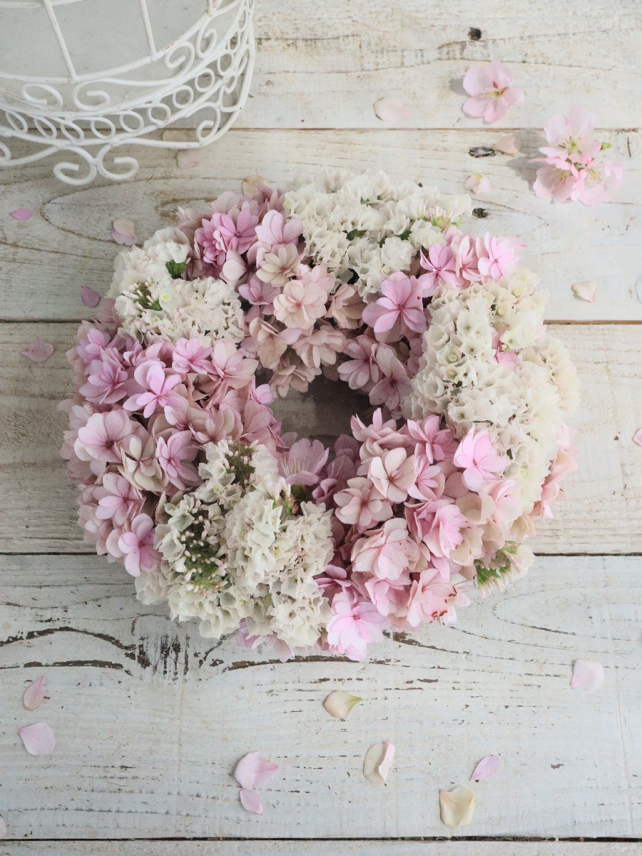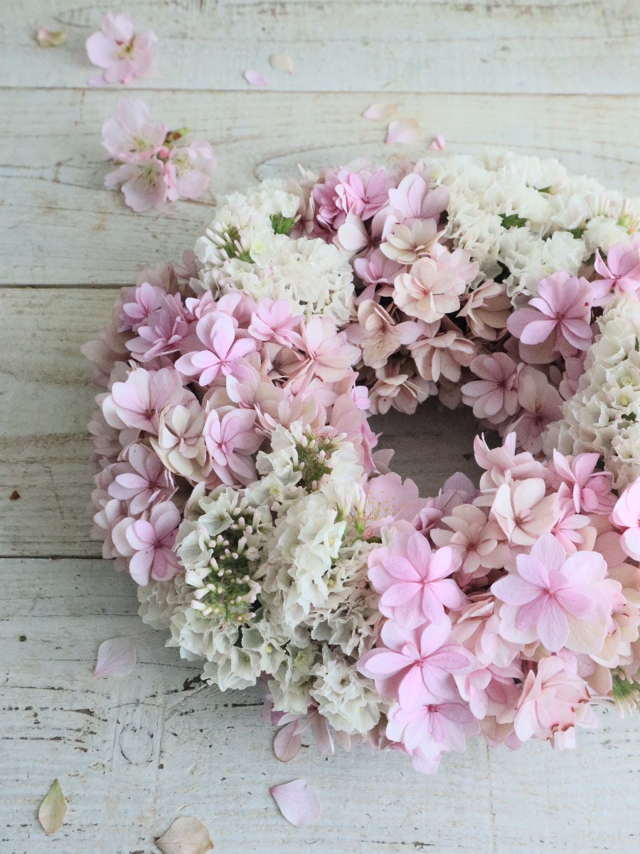 桜色のアジサイリース