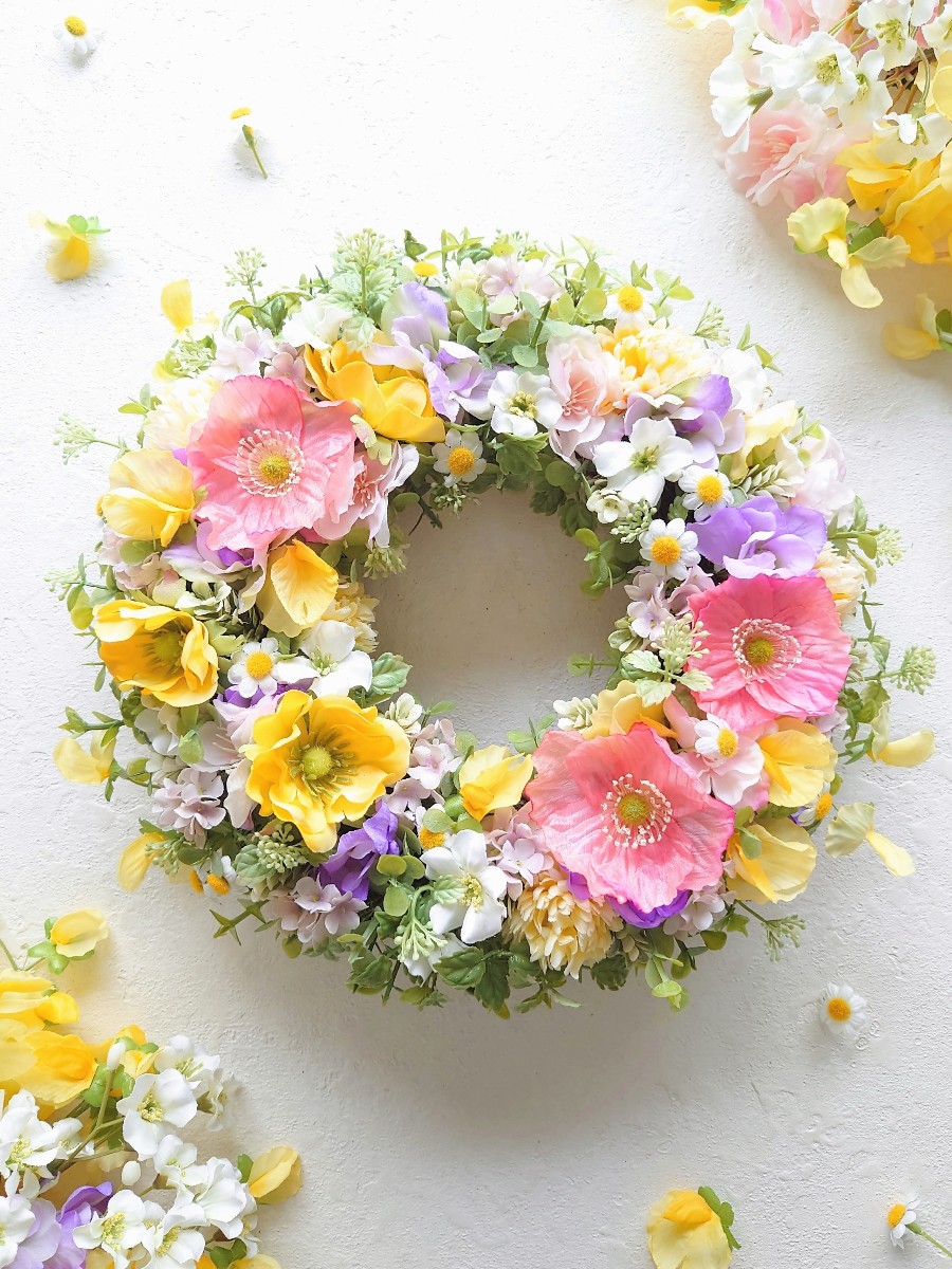 ポピー、アネモネ、スイトピーなど、可愛くて、みずみずしさのあるお花を組みました。