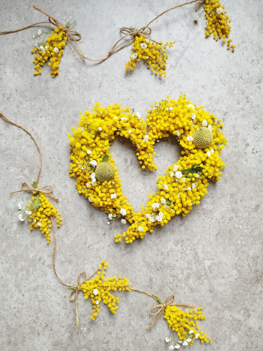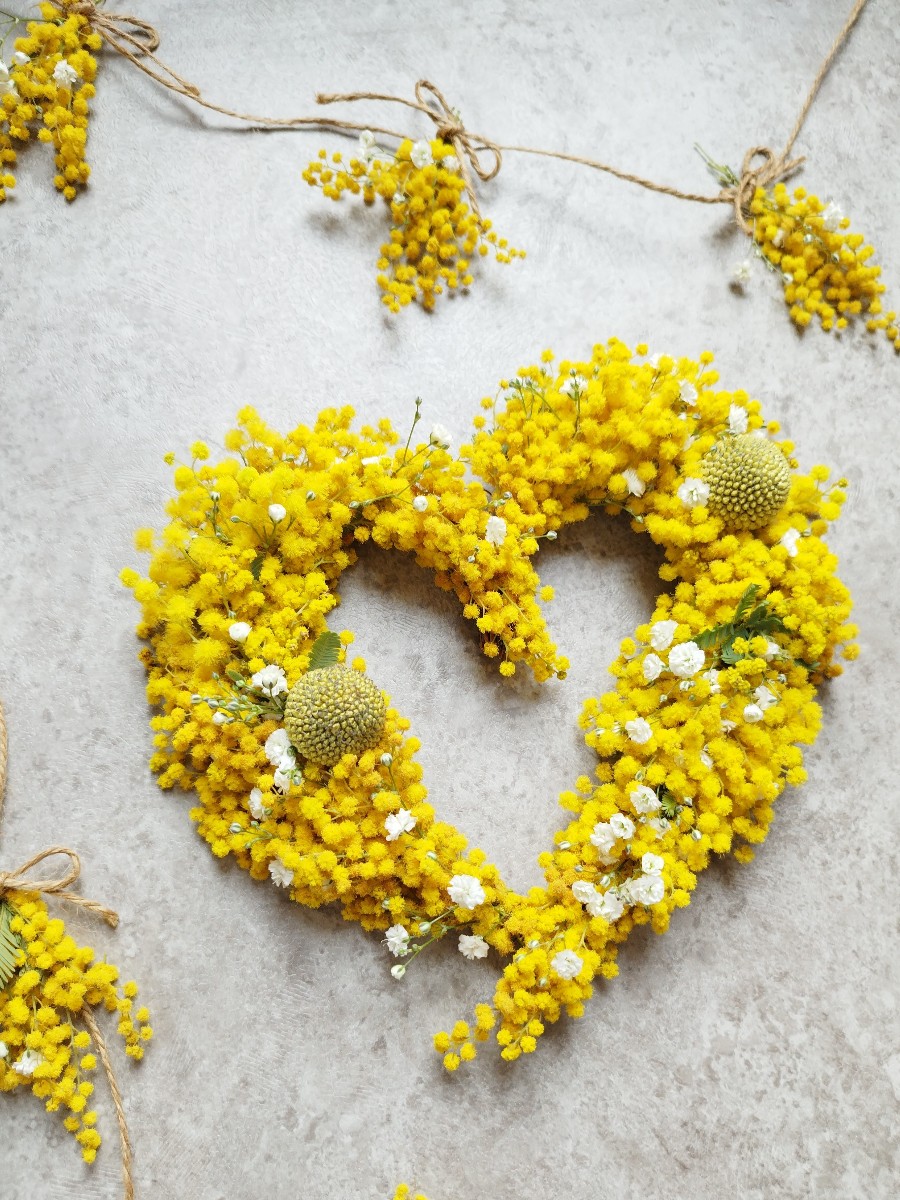 大好きなミモザを、可愛らしいハートリースに仕上げました✨