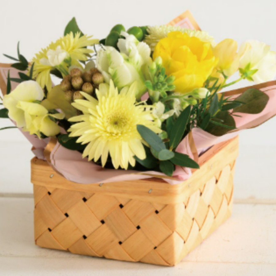 真四角が可愛い!シンプルなスクエア形状の木製のバスケットです。ナチュラルテイストのフラワーアレンジメントにぴったり!イベントから定番まで幅広いシーンでお使いいただけます。