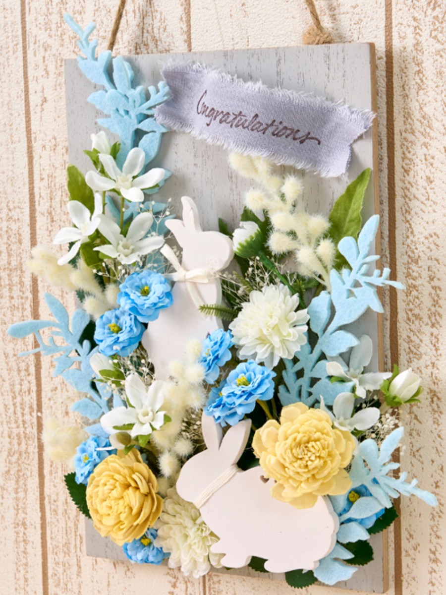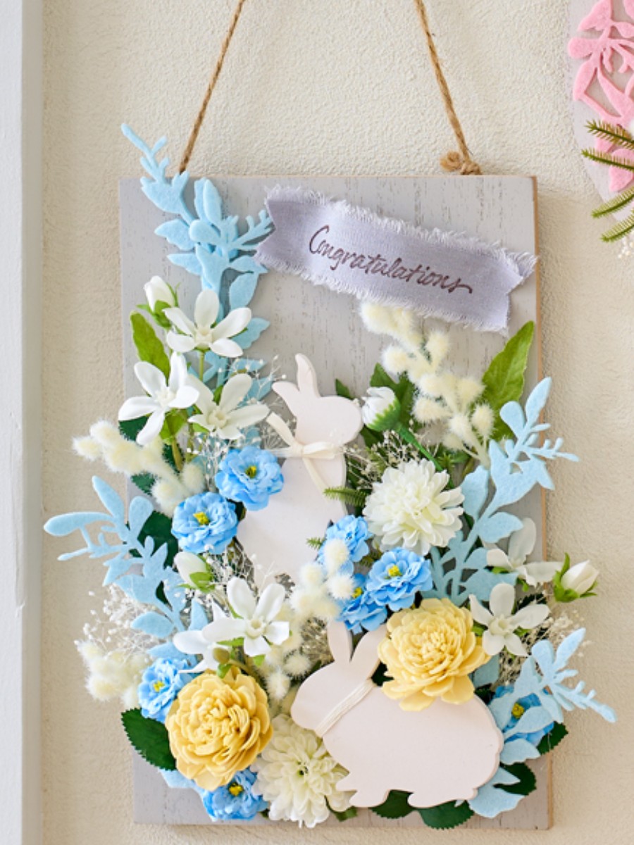 ウサギに立体感が出るようにフレームとの間にフォームを挟んでアレンジしています。