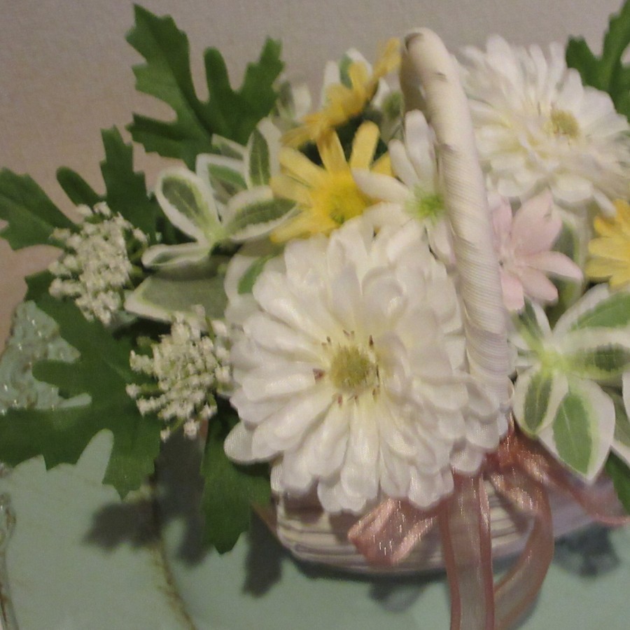 ホワイトのアーティフィシャルフラワー&グリーンいっぱいのアレンジ。