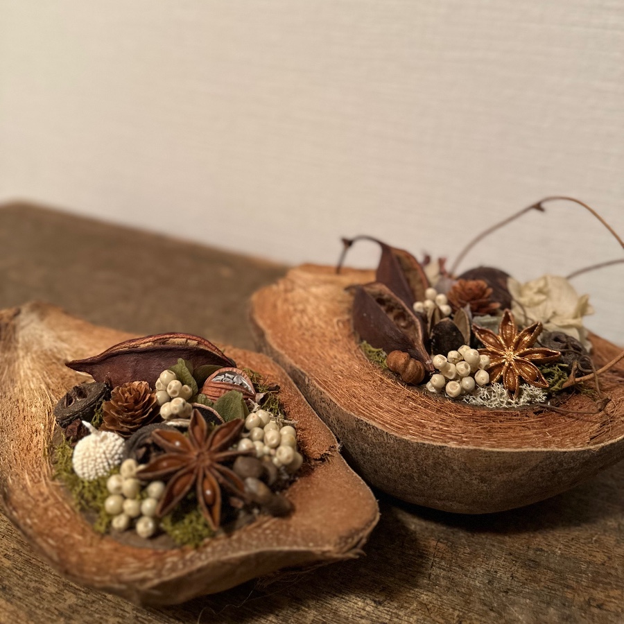 ココナッツが入っていたであろう窪みにアレンジしたもの。