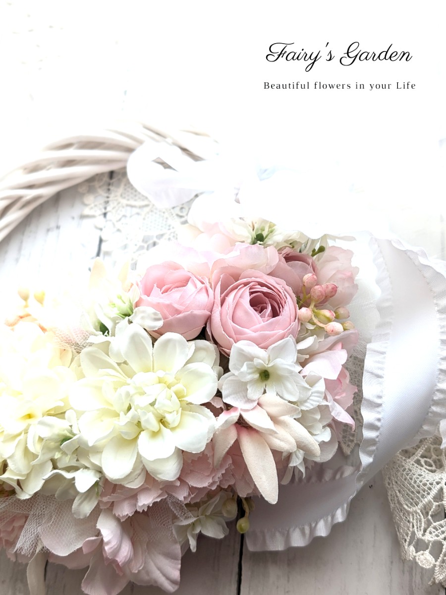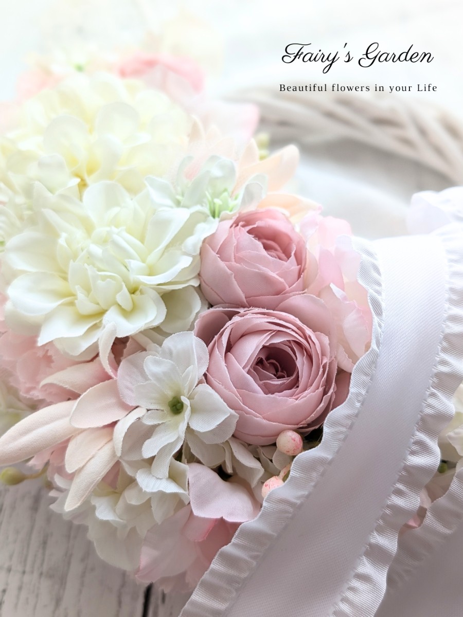 乙女な可愛らしさの中に、清楚さも感じるリースです。
