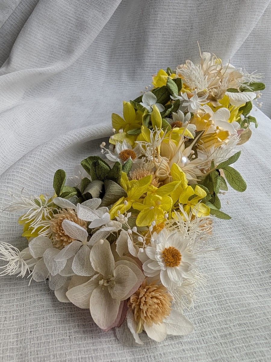 フルールハーバリウム®認定講師です。ハーバリウムをはじめとし、しめ縄リースなどのプリザーブドフラワーやドライフラワーを使った作品の製作、販売もしております。