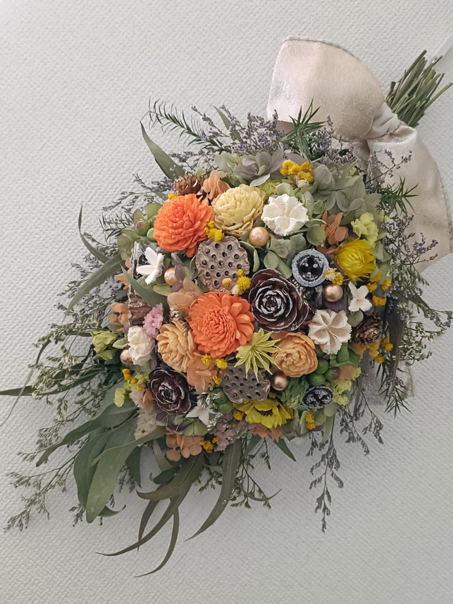 ドライフラワーやプリザーブドフラワーを使用してフラワーアレンジメント作品を作成しています。