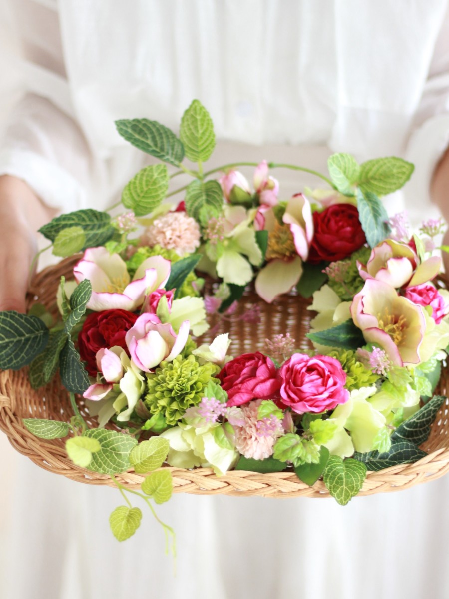 お花初心者でも4ヶ月でリースの基本がしっかり身につき、可愛い!と思えるリースが作れるようになるフラワーリースの専門講座「ビューティフルリースメソッド講座」をオンラインで開催しています。