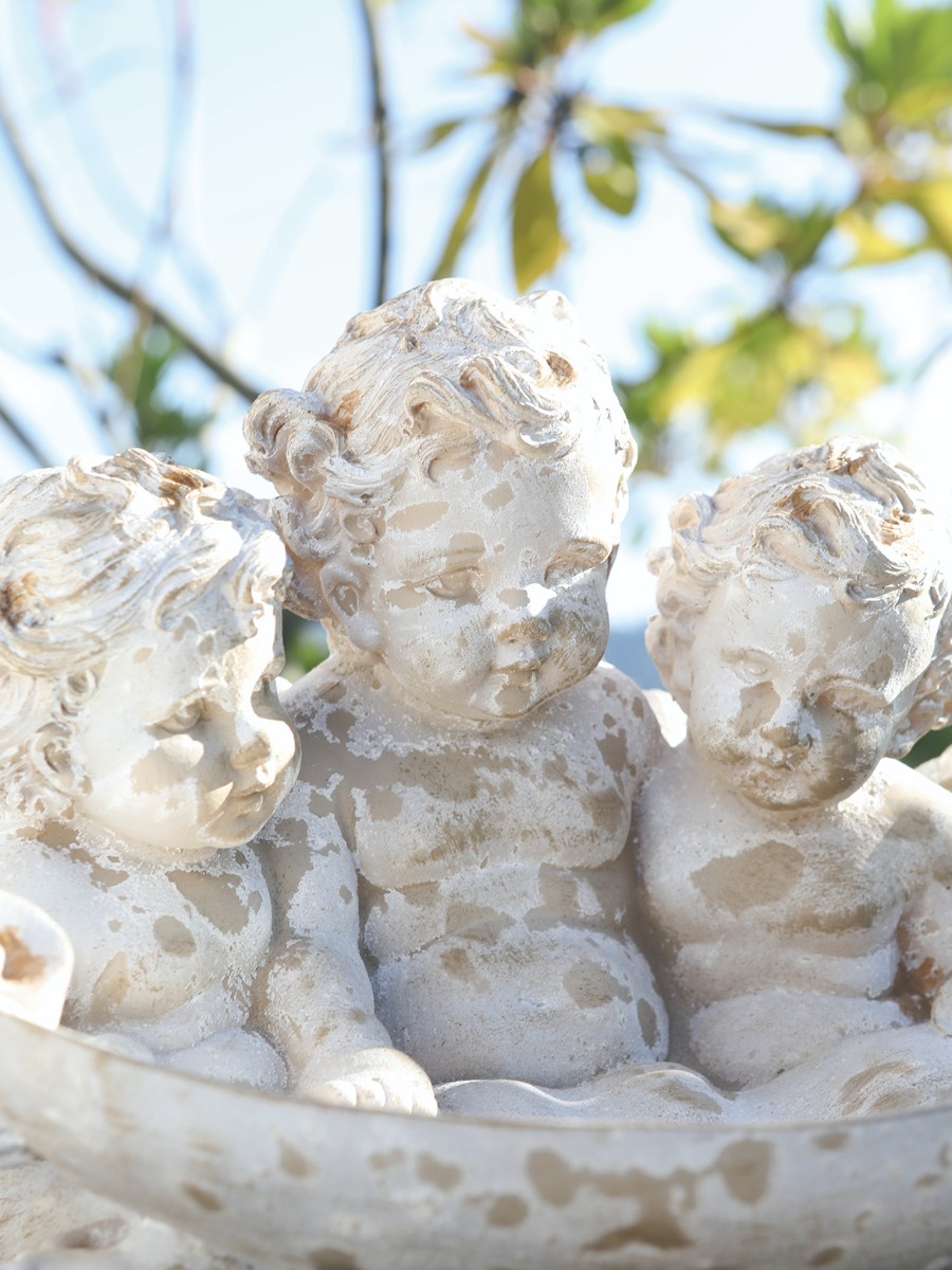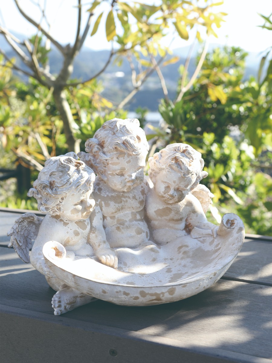 天使たちが仲良く寄り添う姿が愛らしい、トレイオブジェ。
