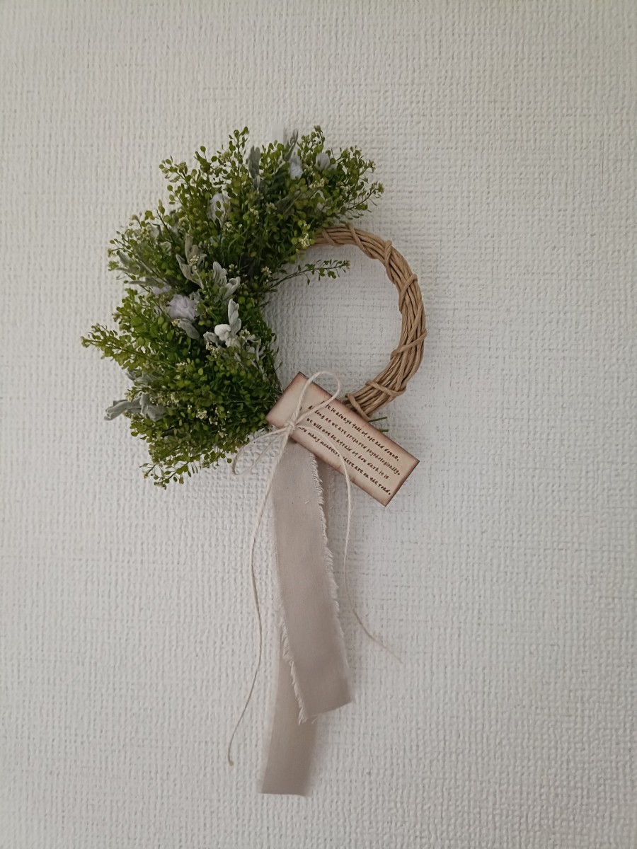 柔らかいグリーンのミニリースを作りました(*^^*)