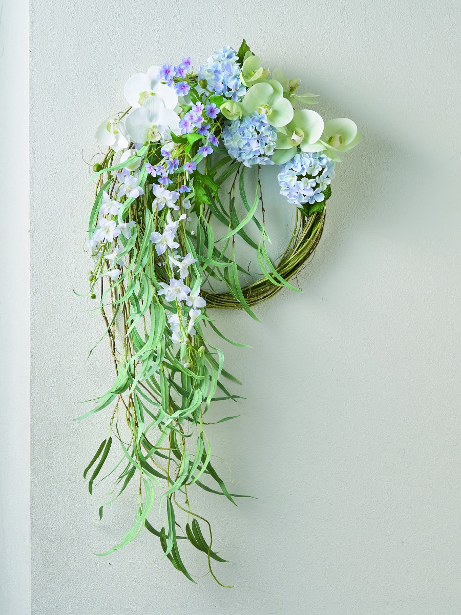 ゆらゆらと流れる優しい柳を生かしたリース。