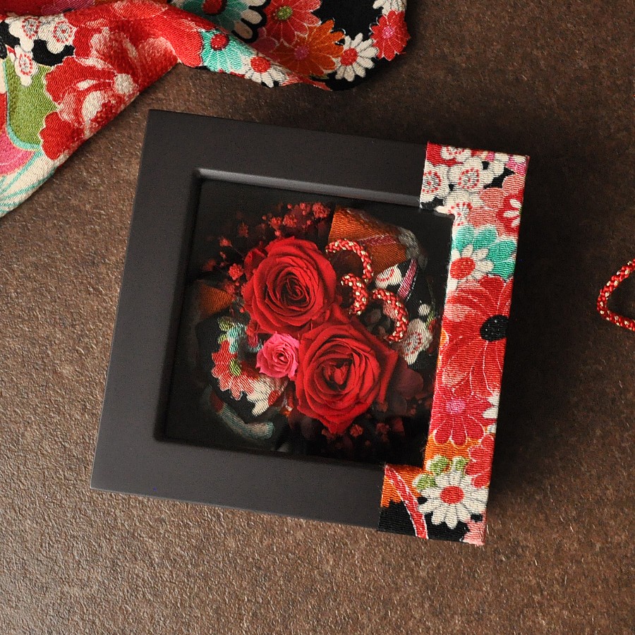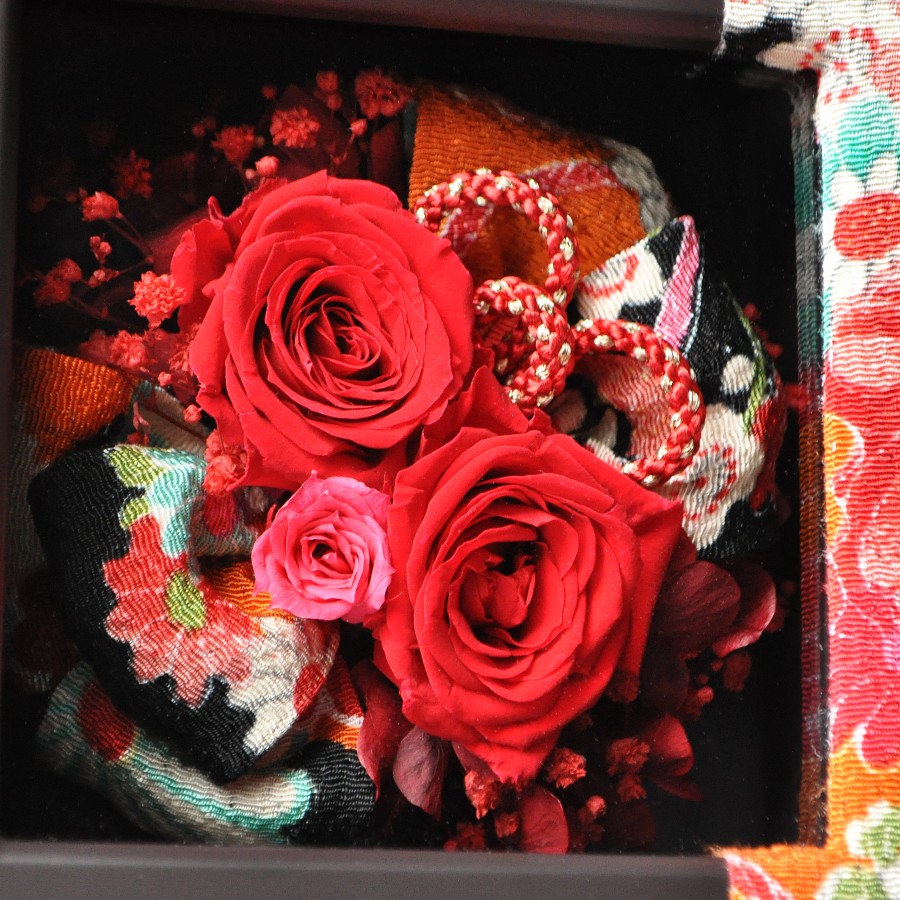 ショップでは、プリザーブドフラワーを中心につまみ細工や水引、レジンなどで、お花モチーフの雑貨やアクセサリーを販売しています。