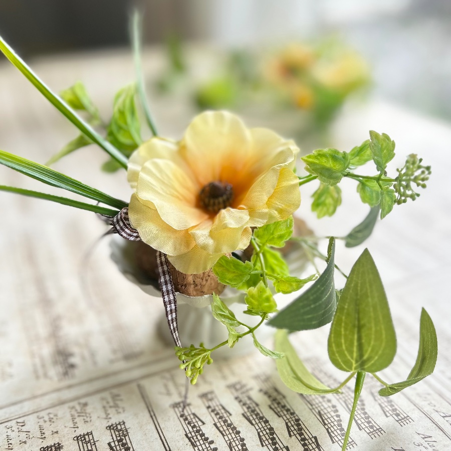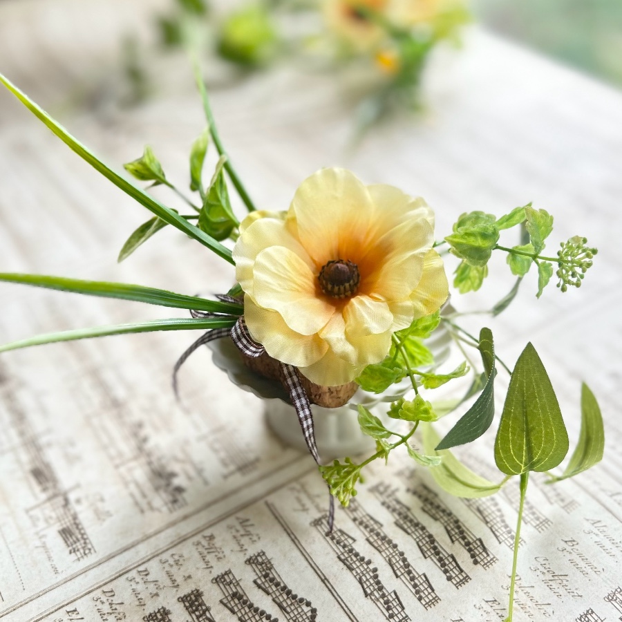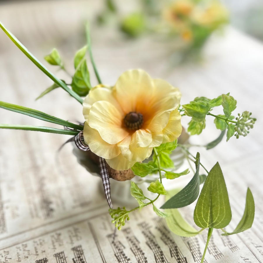 黄色いラックスは1輪でも存在感があり空間を明るく演出してくれます。小さいサイズで場所を選ばず飾れます。