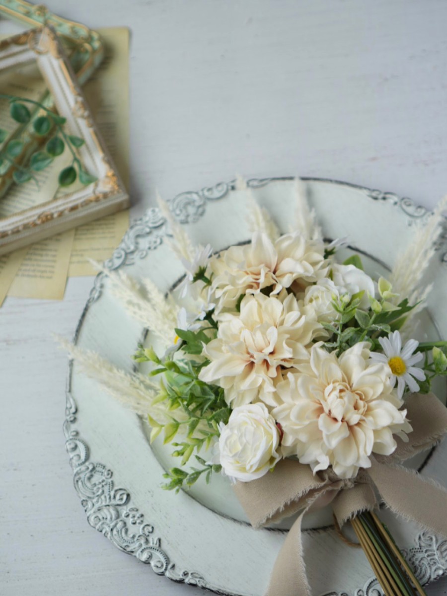 ダリアやローズ、デイジーのふんわりとしたお花に、