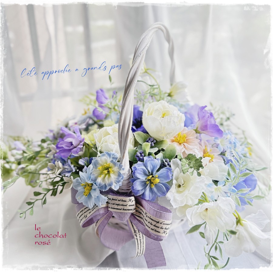 爽やかで涼し気なバスケットアレンジメントです。