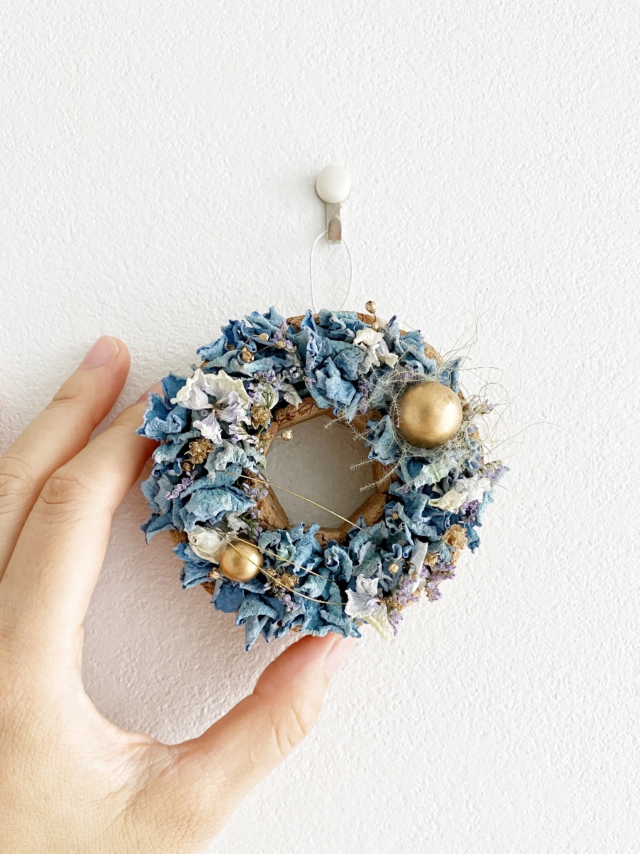 紫陽花をバタフライピーを使ったゼリーのように見立て、ゴールドで惑星の輝きを表現しました。