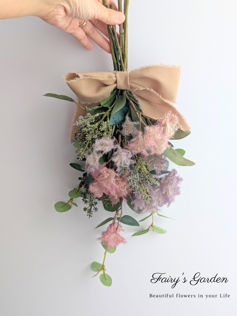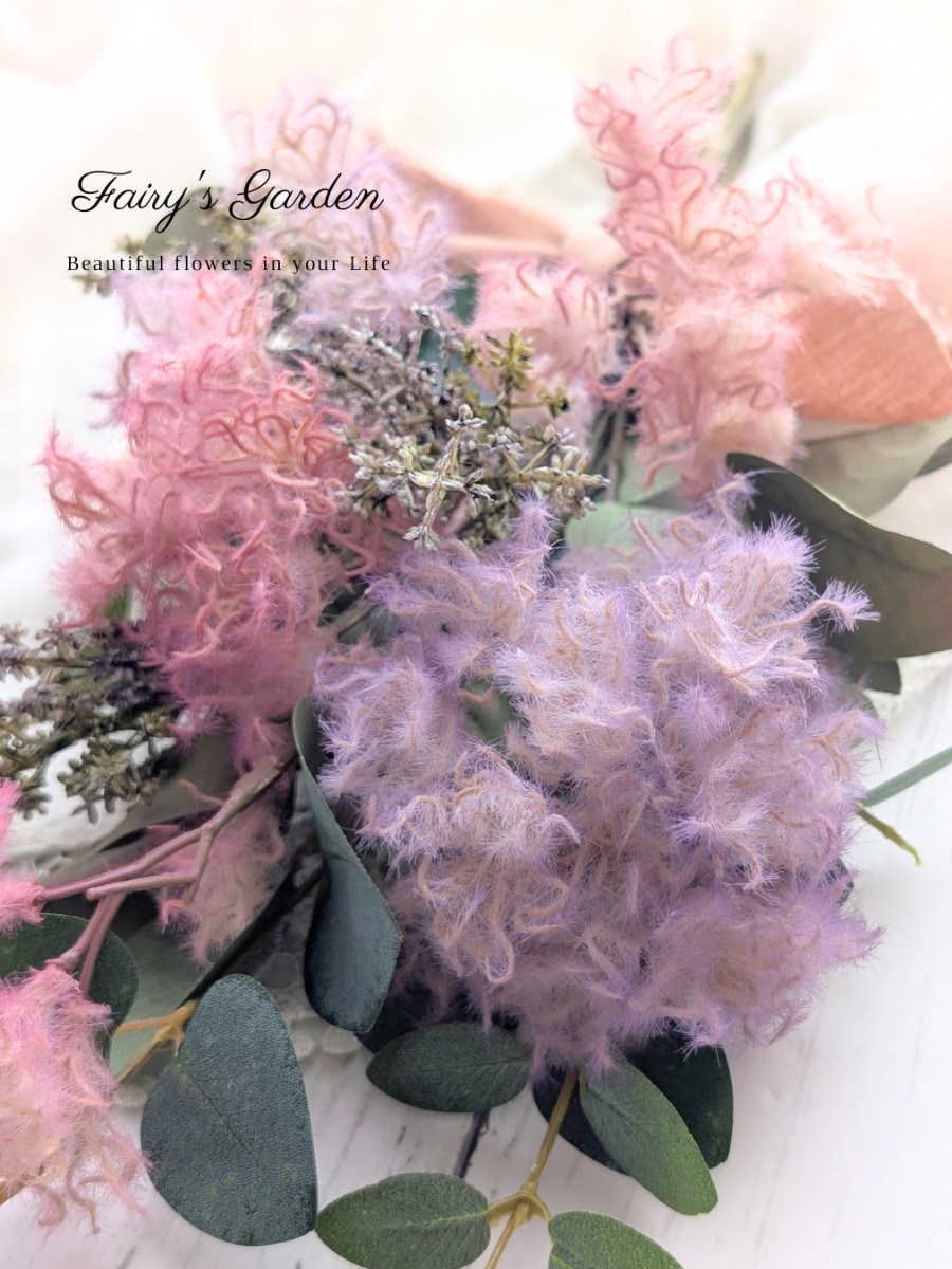 アーティフィシャルフラワーのスモークツリーとユーカリのスワッグです。