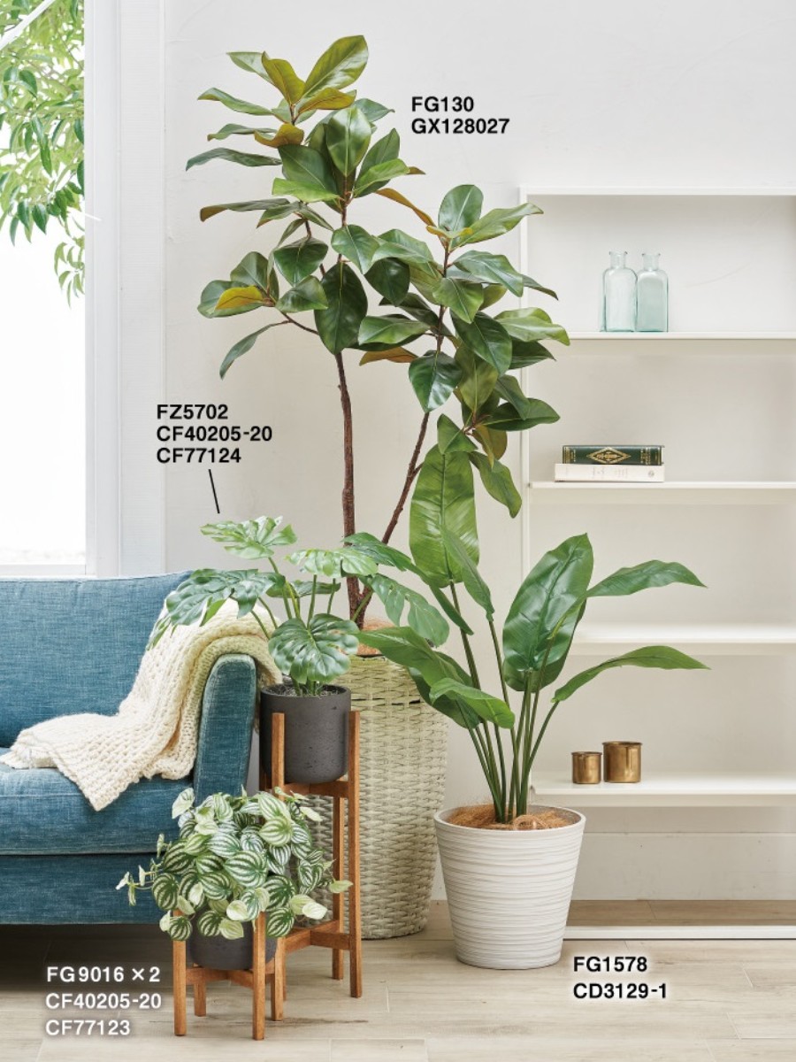 室内になじむように鉢の色味をおさえ、植物がメインになる組み合わせをご紹介。