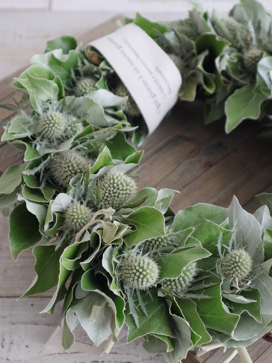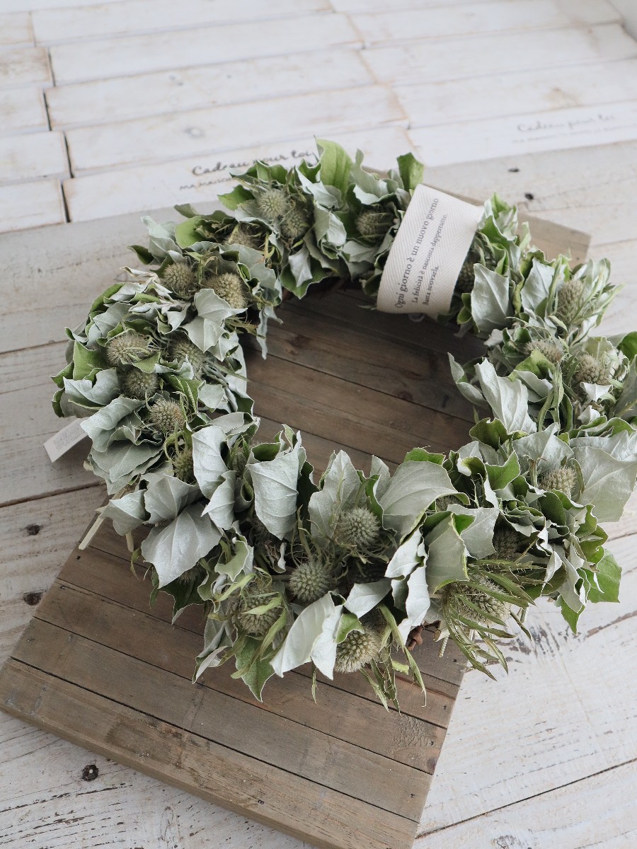 裏表で異なる葉色がきれいな銀葉グミでリース。