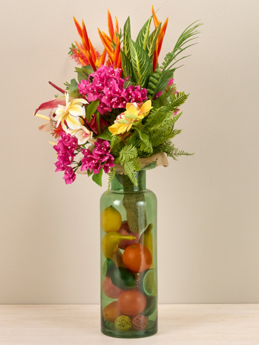 ボトルに果物を詰めているので、ステムは短めにカットし、ジュートクロスで包んでいます。