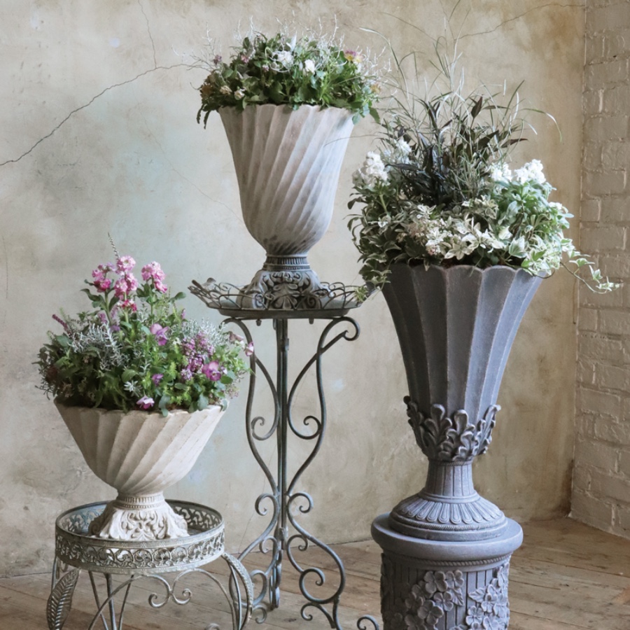 可愛い動物のオブジェをはじめ、アフリカンやエスニック系のかっこいい系、アラベスク柄やダマスク柄といったエレガント系のものまで、どなたでもお取り扱いいただけるように幅広いジャンルのデザインの鉢を数多く企画開発しております。