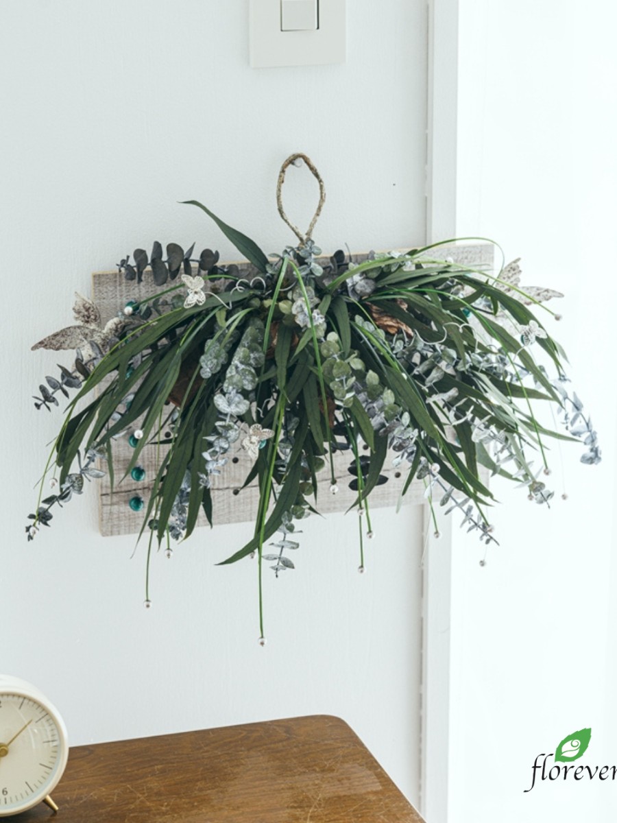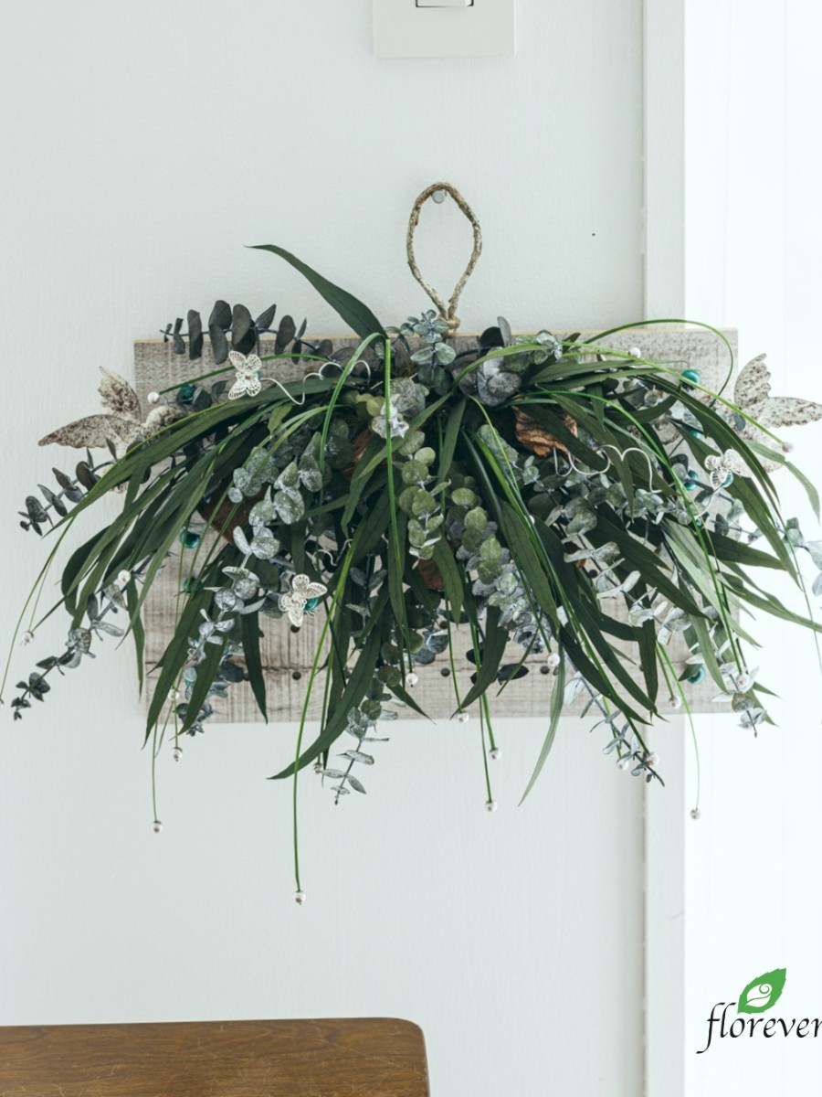 【フロールエバーカタログ2025-2026 掲載アレンジメントのご紹介】「プリザーブドグリーンの壁掛けウッドボード」掲載ページP.29