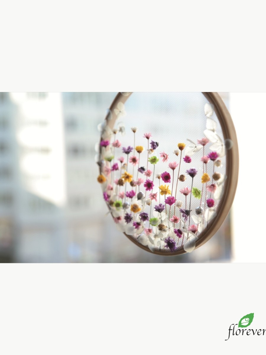 【フロールエバーカタログ2025-2026 掲載アレンジメントのご紹介】「ドライフラワーの刺繍枠リース」掲載ページP.36