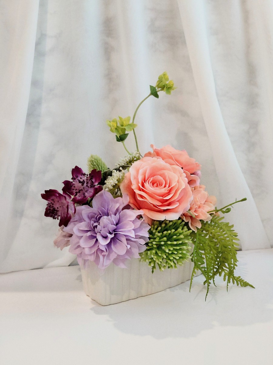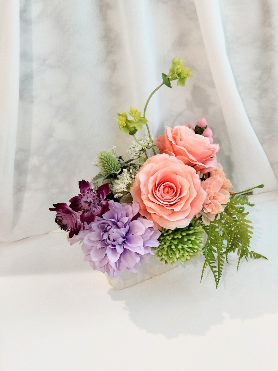 季節に合わせたアレンジメントを、和風でも洋風でもお楽しみいただけるよう心を込めておつくりしております♡