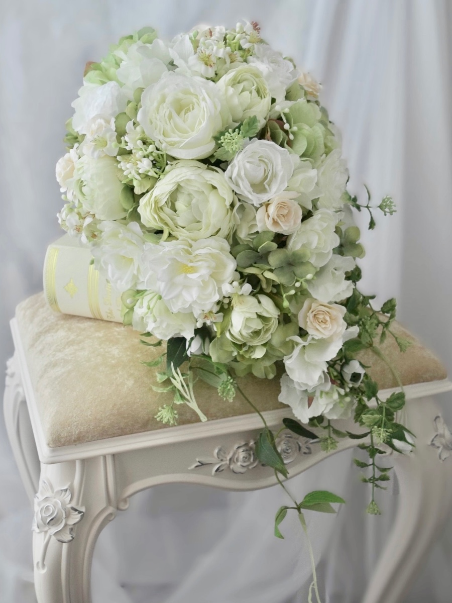 現在は、主にブライダルブーケ・リース・アレンジメントなどを制作・販売させていただいております。