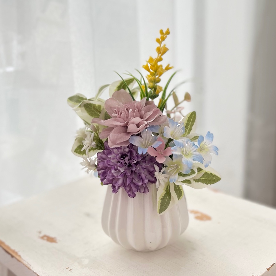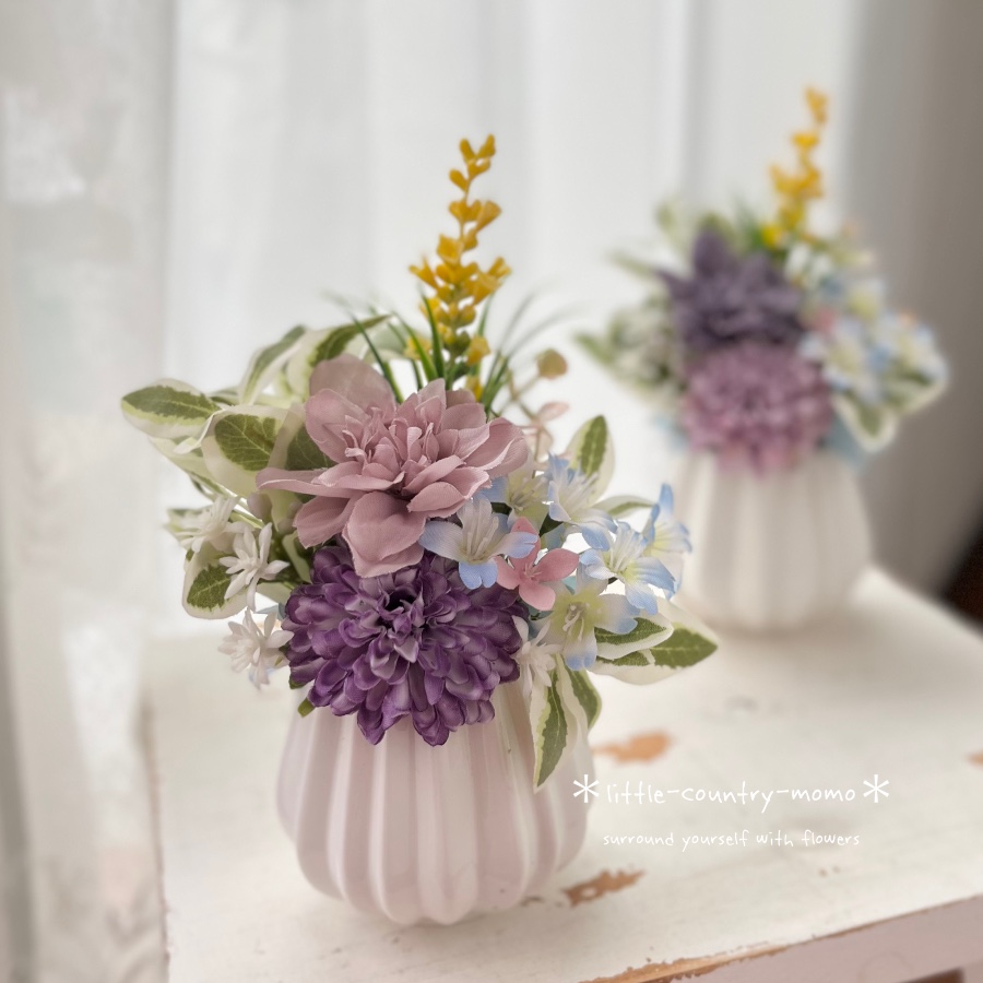 私の作品もやさしい空気に満たされ 手に取って笑顔になってほしいという想いを込めてプリザーブドフラワー アーティフィシャルフラワー ドライフラワーを織り交ぜたナチュラルな花雑貨を制作しています。