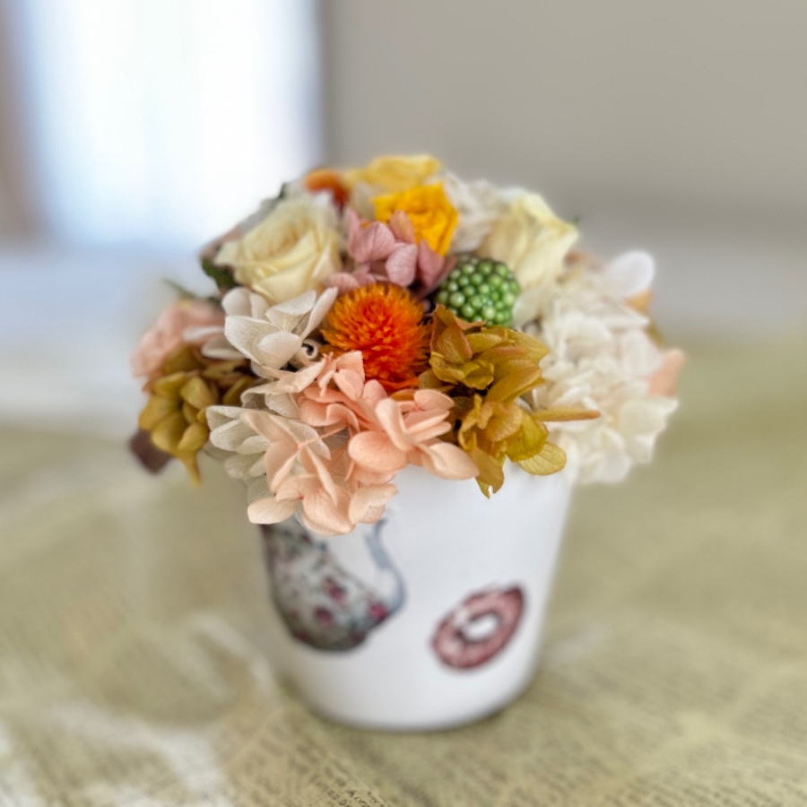 カップの上にドーム状にお花をアレンジして、マフィンのように可愛く仕上げました。