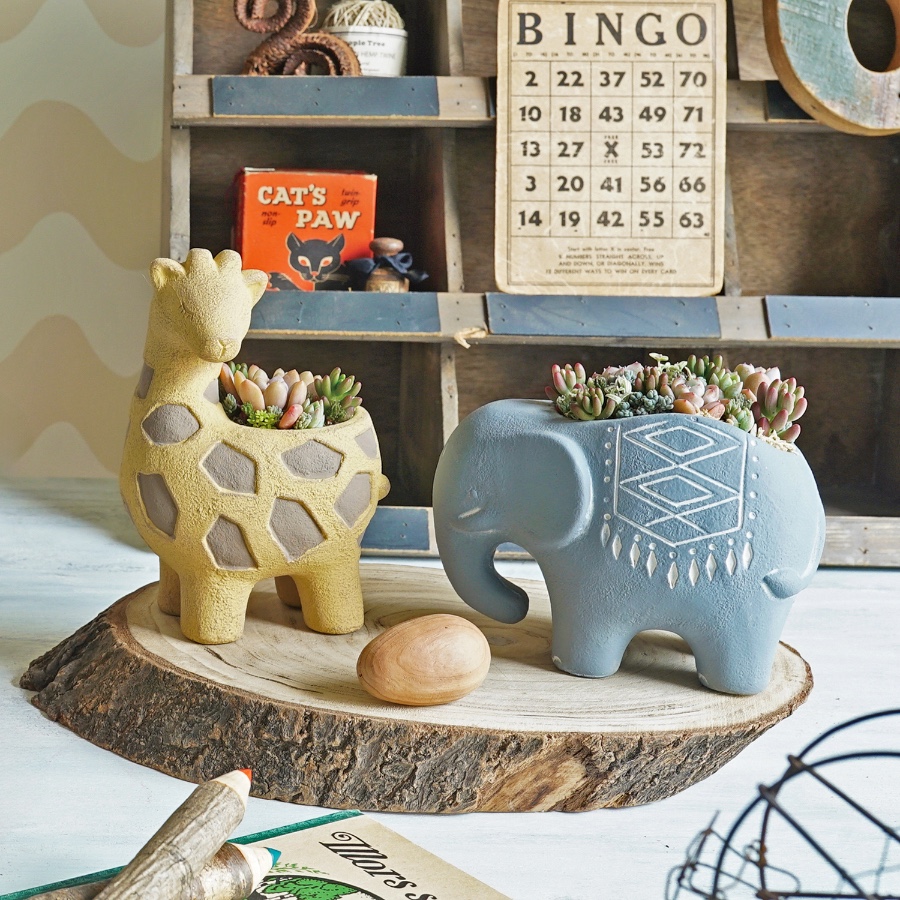 可愛い動物のオブジェをはじめ、アフリカンやエスニック系のかっこいい系、アラベスク柄やダマスク柄といったエレガント系のものまで、どなたでもお取り扱いいただけるように幅広いジャンルのデザインの鉢を数多く企画開発しております。