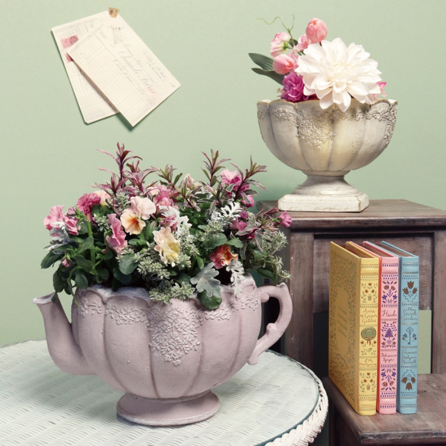 お茶会をイメージしたエレガントなグラスファイバー製の鉢。