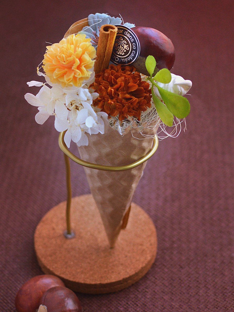 アイスアレンジの秋バージョンは「マロン・栗」をイメージしてアレンジしました。