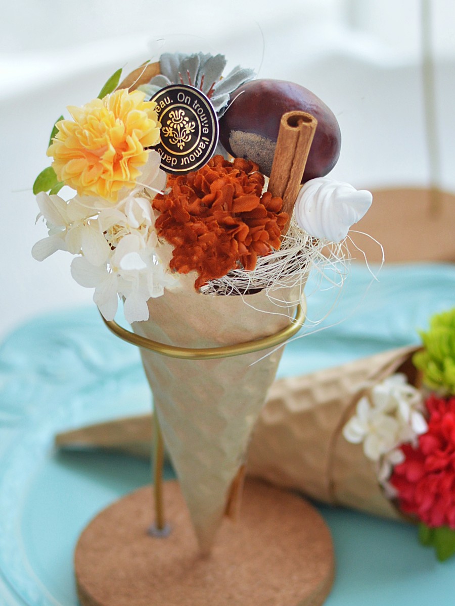 カップやスタンドに立てて飾りたいアイスアレンジです。