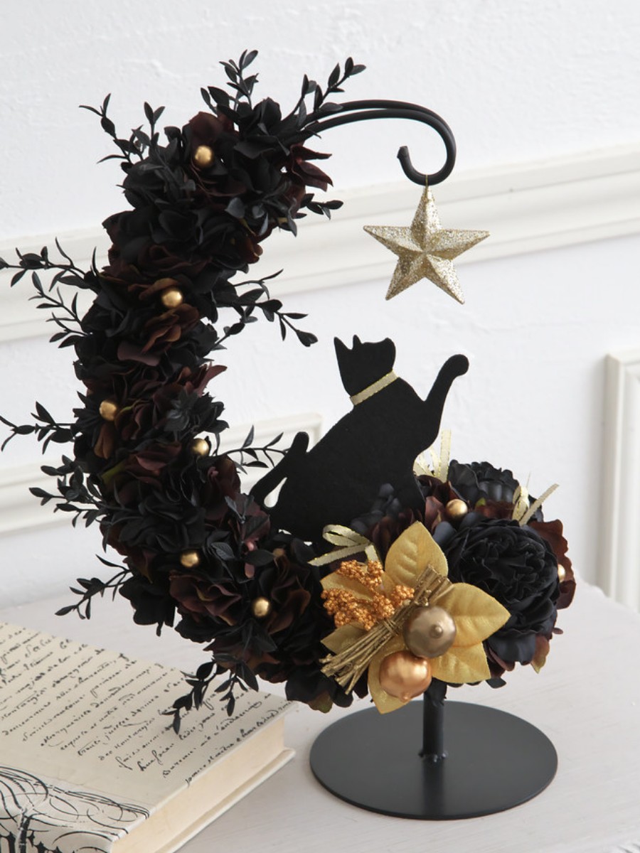 ゴールドのパンプキンがポイントで、ハロウィンのディスプレイにおすすめです。
