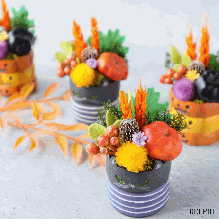 秋を感じさせる小さなアレンジメントは季節のインテリアとして、またプレゼントにもおすすめです。