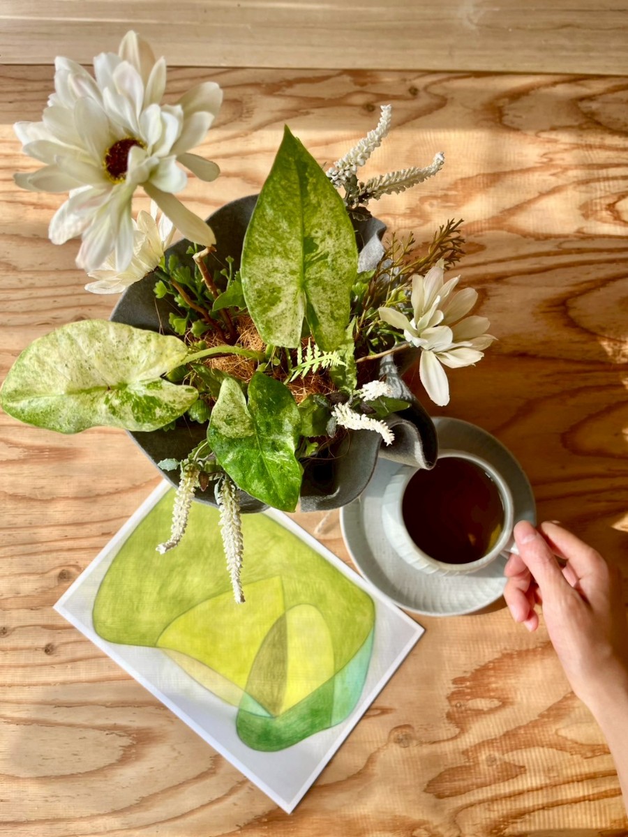 造園会社と花屋での経験を活かし、観葉植物×アートフラワーの育てやすいギフトアレンジを制作しています。