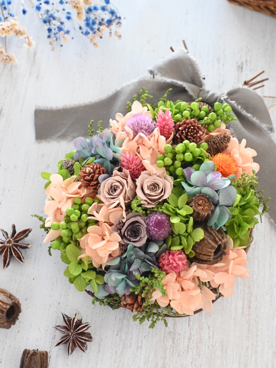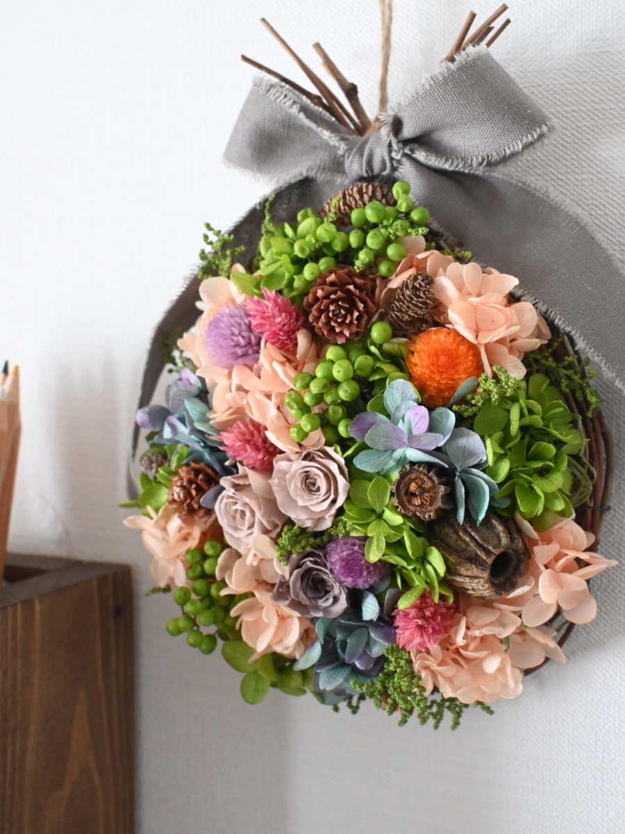 夏から秋にかけて飾るリースとしてお作りしました✨