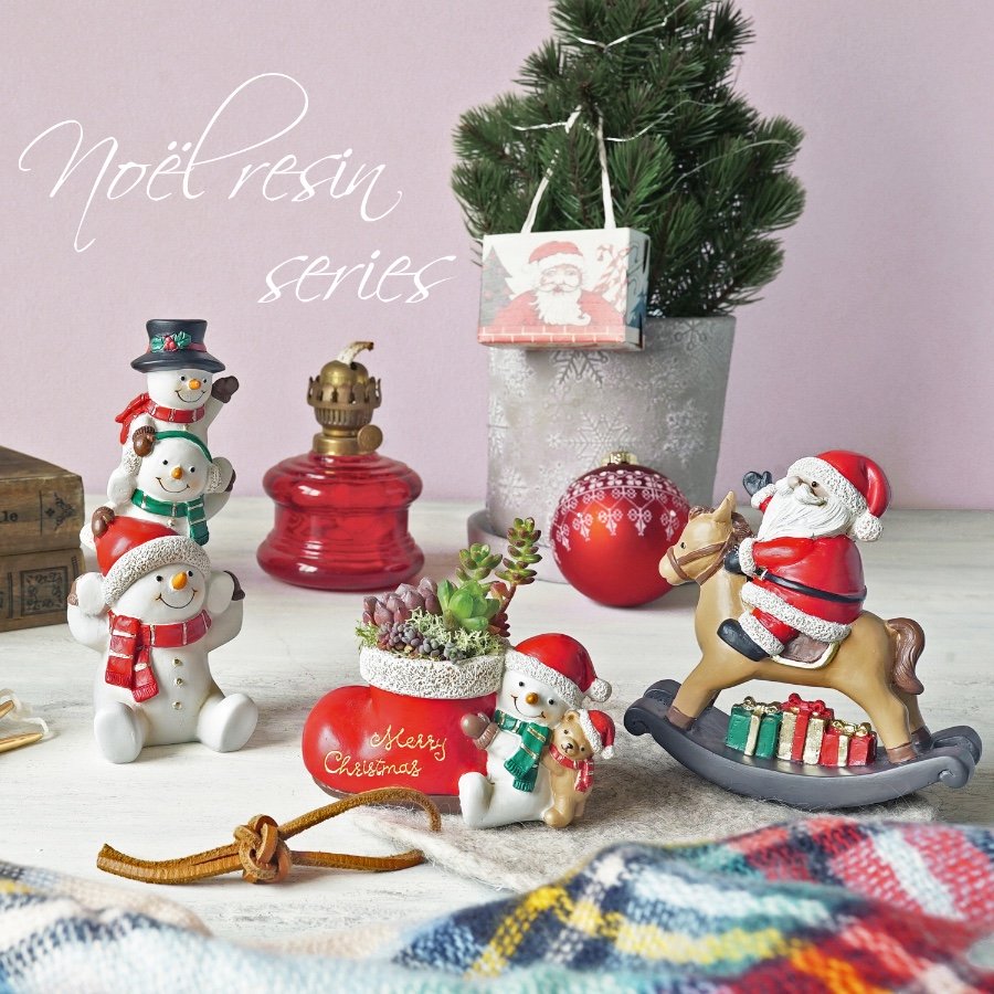 クリスマス気分を盛り上げるレジン製の鉢とオーナメント。